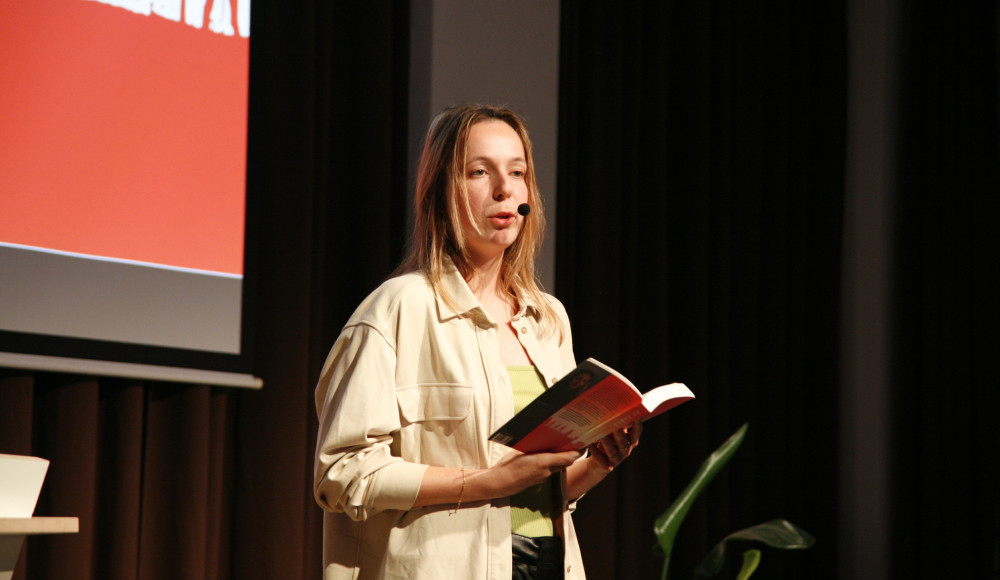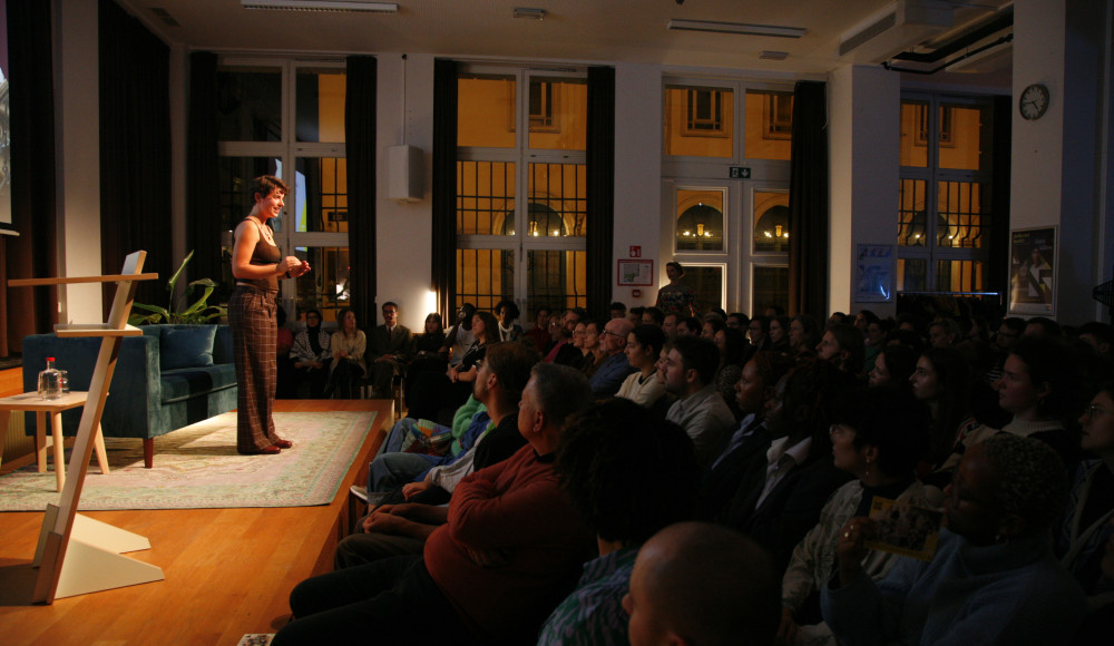 Suzanne Roes trapte de avond af met een openingsessay over de taal van de macht. Suzanne is een Nederlandse filosoof in Antwerpen met een diepgewortelde interesse voor het woord. Ze spreekt, leest, schrijft en zingt, maar vraagt zich vooral af wie wanneer het woord mag nemen. Beluister haar essay of lees het hier.