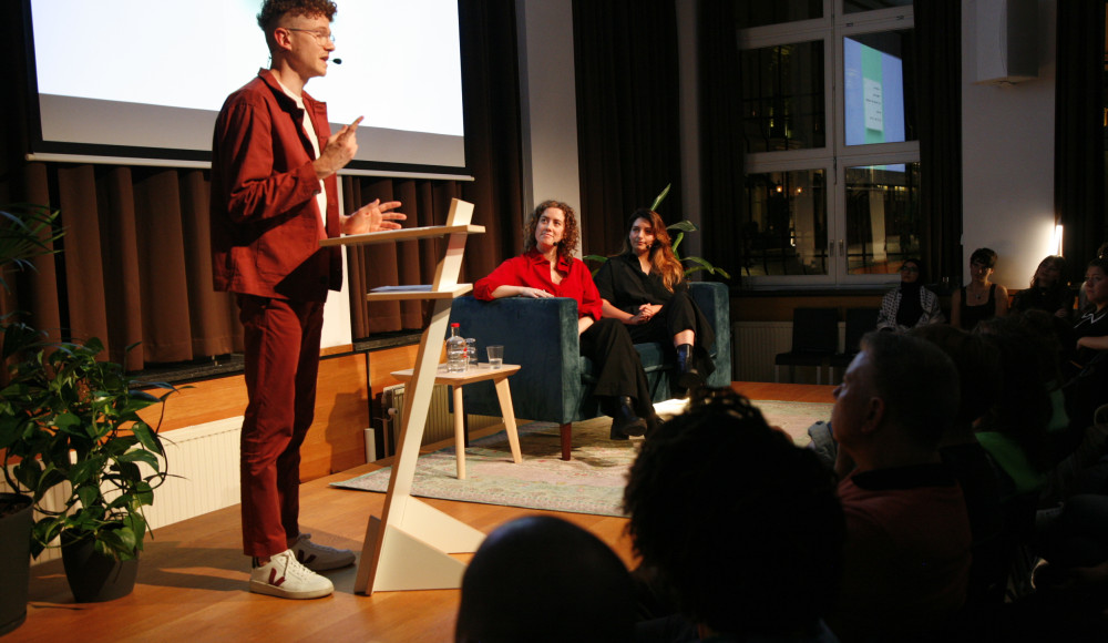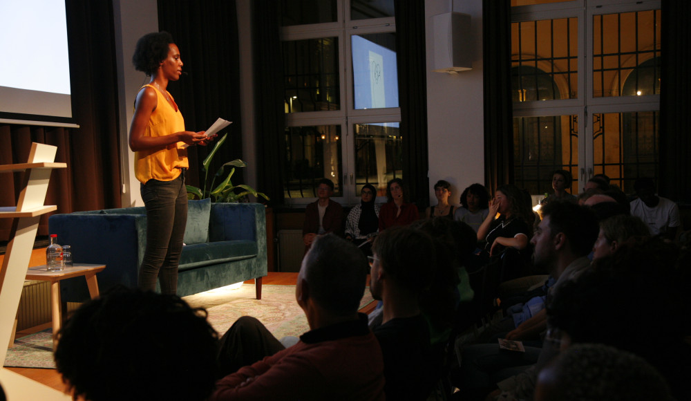 Sakina El Kaddouri was de host van de avond en loodste het publiek én sprekers vakkundig doorheen het event.