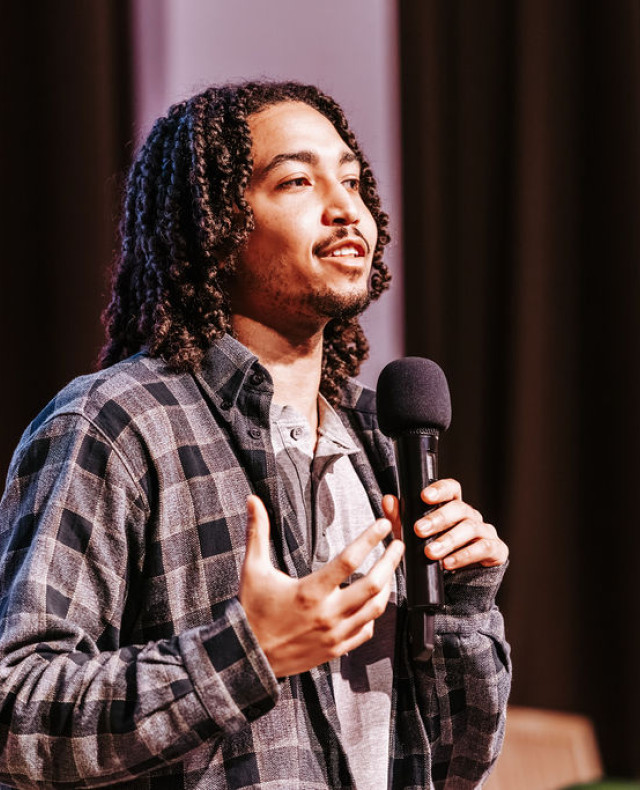 Op 24 oktober stelden de deelnemers van Nieuw Geluid 2025 zichzelf en hun thema’s voor aan het publiek. Noël Baffoe Sergeant is een Ghanese-Belgische regisseur, muzikant, acteur en politicoloog. Vanuit zijn academische achtergrond in conflict en ontwikkeling verdiept hij zich, onder meer in zijn artistieke praktijk, in de complexe verbanden tussen identiteit, macht en representatie. Tijdens Nieuw Geluid Live vertelt hij over het belang van storytelling en counterstorytelling.