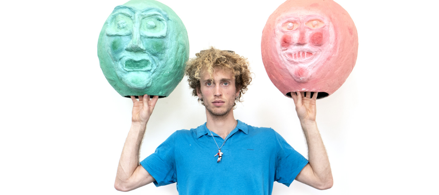 Abel Dijkstra (1998) is striptekenaar en illustrator. Hij studeerde Comic Design aan ArtEZ Zwolle. Hij tekent door te kleuren en zijn verhalen ontvouwen zich in dialoog: personages zeggen korte zinnen met veel handengeflapper, hun lichaam ongemakkelijk expressief. Samen spullen maken is belangrijk in Abels praktijk: hij werkt vanuit collectief Lovely doorlopend aan een gelijknamig (strip)magazine en tekent momenteel aan zijn debuut-beeldverhaal samen met vier andere tekenaars.