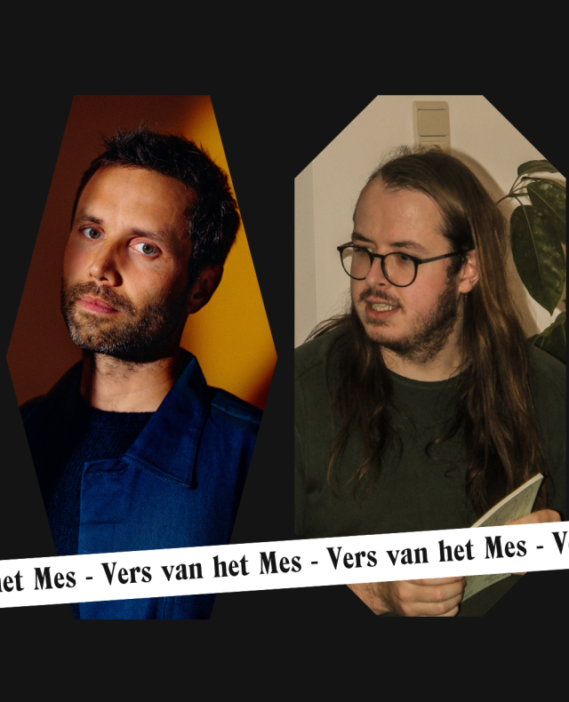 Uit 118 kandidaten werden Tim Bongaerts, Casper Burghgraeve, Eelco Couvreur en Hannah Jamin Zaouad geselecteerd voor Vers van het Mes 2025. Vanavond delen zij hun werk en hun poëtica.